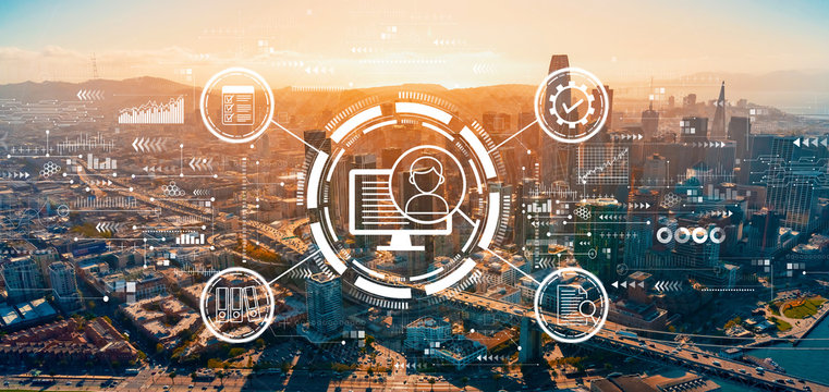 Document management system (DMS) allowing efficient business processes. colleagues working with file manager on computer screen at the office to approve a report. Digital transformation.