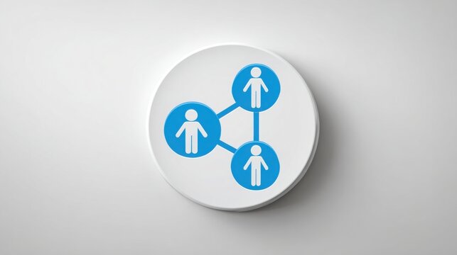 White button featuring a blue network icon representing ai-mediated collaboration and connected nodes concept