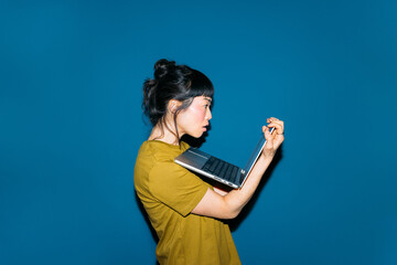 Futuristic data interface with digital human face silhouette