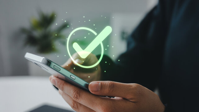 Mobile phone check mark success completed task verification app ui ux design concept illustration art