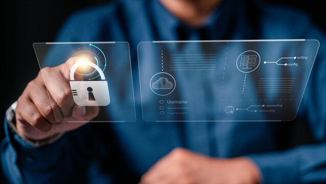 technology, login, information, security, privacy, business, protection, protect, padlock, password. touching padlock hud to view cloud technology system. that tech is protect your data and security.