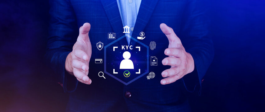 KYC, verification concept, KYC Know Your Customer Technology. Business verifying identity clients, Client authentication access personal financial data, digital technology against digital cyber crime.