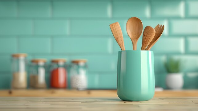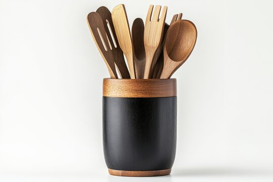 Isolated Kitchen Utensil Set in White Holder for Cooking and Preparation