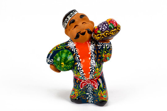 Traditional uzbek pattern on the ceramic tile on the wall of the mosque.
