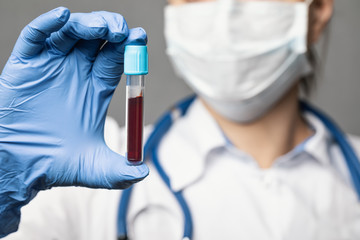 Monkeypox virus blood sample tubes and stethoscope clinical laboratory diagnostic concept