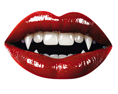Close-up graphic portrayal of sinister vampire lips.