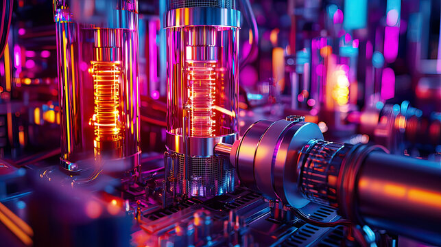 Close-up of a vanadium redox flow battery in a high-tech lab, intricate piping and equipment, sharp lighting, ultra-detailed