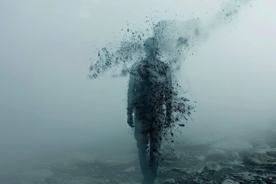 The passing of time is visually depicted in this image, featuring a hand holding an antique clock as it disintegrates into sparkling dust, all set against a dark and moody background.