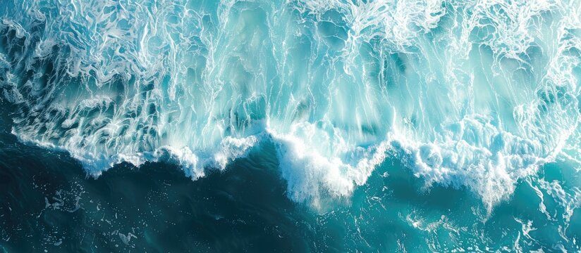 Sea and waves seen from a high vantage point with a serene water surface and space for duplication.