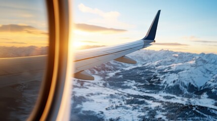 Compact folding drone hovering over rocky mountain peak at golden hour aerial panorama