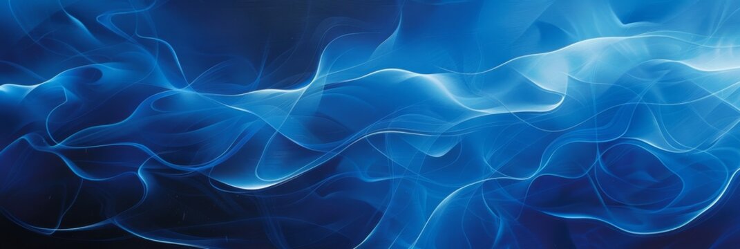 An expansive abstract background in a deep blue hue, featuring fluid geometric shapes that flow and merge like water, creating a sense of calm and continuity
