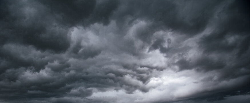 The dark sky with heavy clouds converging and a violent storm before the rain.Bad or moody weather sky and environment. carbon dioxide emissions, greenhouse effect, global warming, climate change