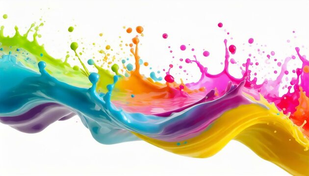 Schizzo colorato multicolore in acqua. Schizzo multicolore in acqua. Onda colorata di liquido.  Colorful wave paint splash border with liquid drops in water.