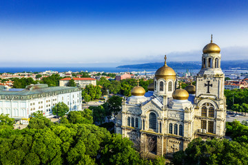 Aerial view by drone of Mother of God Cathedral, Varna, Bulgaria, Europe