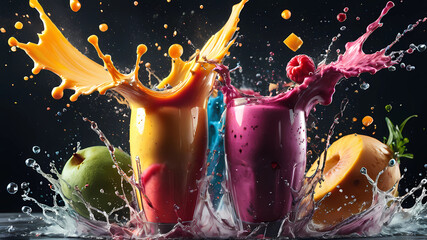 Colorful lunch boxes with varied snacks and sweets on wooden table