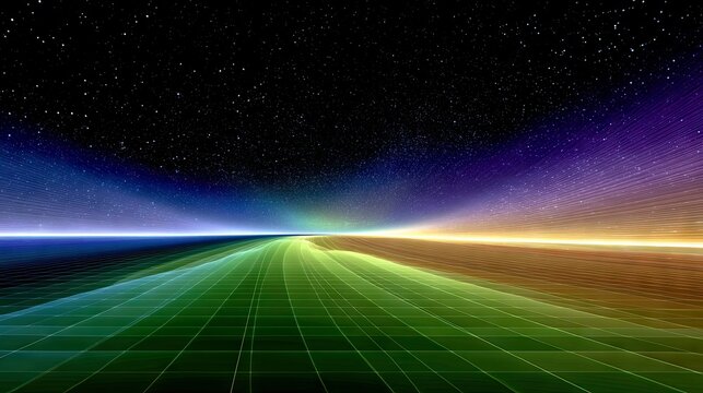 Futuristic grid stretching into a starry night sky
