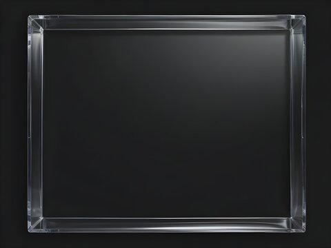 Minimal transparent glass cube with lit edges reflecting on glossy white surface