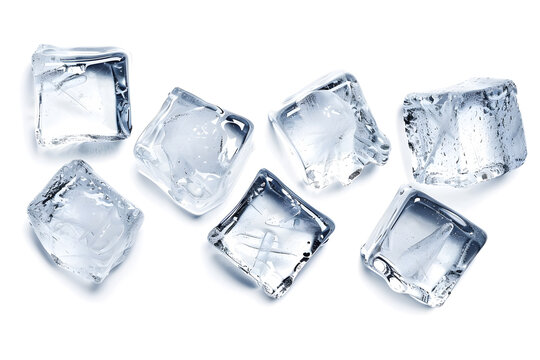 Ice cubes collection top view isolated on white background