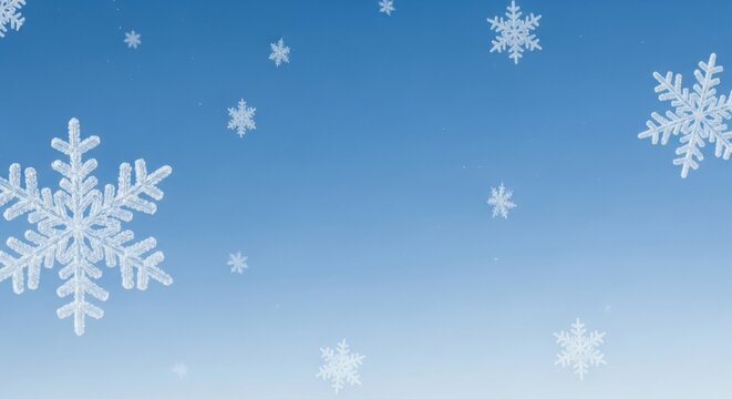 Winter snowflakes falling against blue sky