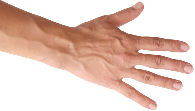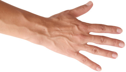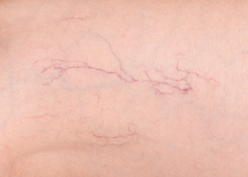 A fragment of human skin with varicose veins. Varicose veins closeup. Varicose veins disease.