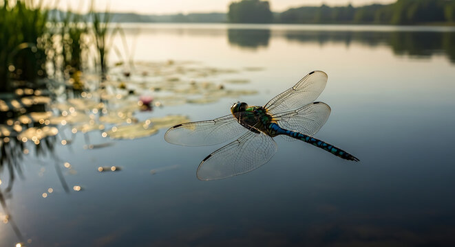 A dragonfly with clear, veined wings.