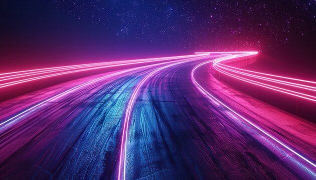 Night racetrack featuring dynamic light trails depicting speed