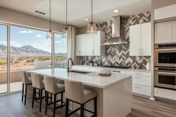 Modern Kitchen with Island and Mountain View