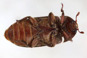 Dermestes bicolor, Insect of family Dermestidae called carpet beetles. Pests in homes. Adult insect viewed from the ventral side.