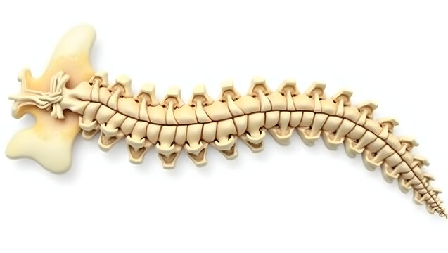 Anatomy & Physiology A labeled spinal cord model, isolated on white, showing segments, dorsal and ventral roots, and ganglia for anatomy, neurology, and surgery(1)