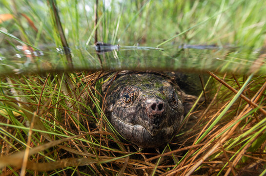 Large common snapping turtle in situ from a Massachusetts vernal pool in early summer.
