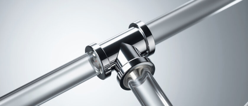 High quality metal pipe joint with transparent tubing, showcasing modern design and precision engineering. Ideal for industrial applications