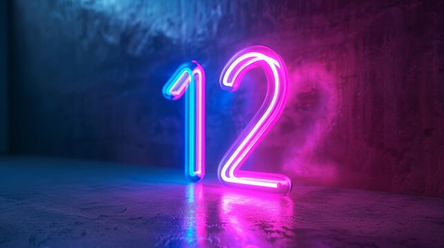 Neon number 100, gradient orange-yellow neon glow, 3D design, dark blue backdrop.