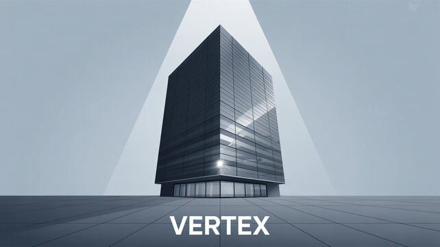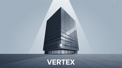 Modern vertex building with glass facade under spotlight, showcasing architectural design and urban development in a sleek and professional manner