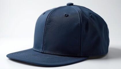 Plain navy blue baseball cap on white background. Simple blank hat for custom design. Flat brim sportswear accessory for sun protection. Casual street style headwear.