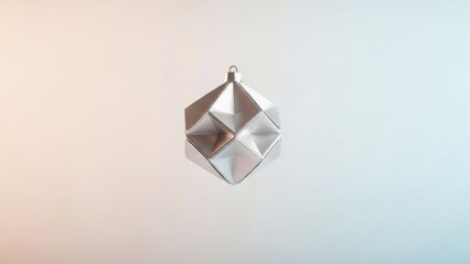 A close-up shot of a shiny silver geometric faceted ornament with a loop, set against a soft gradient background.