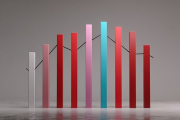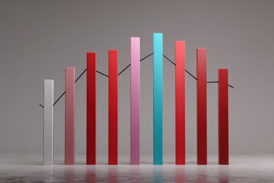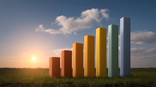 Visual representation of economic growth and success depicted as a colorful bar chart rising in a natural meadow at sunset