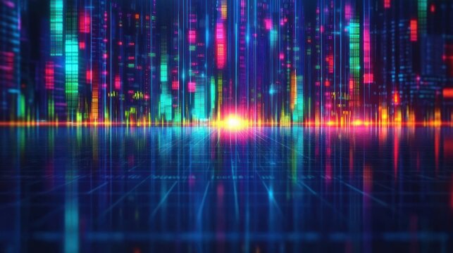 Bright colorful bar chart on tech interface with digital backdrop