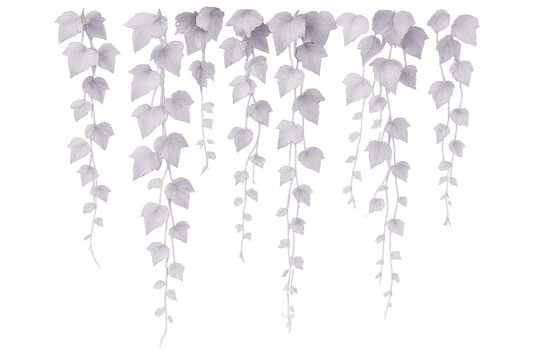 White ivy tendrils cascading gracefully, forming delicate botanical silhouette against transparent backdrop