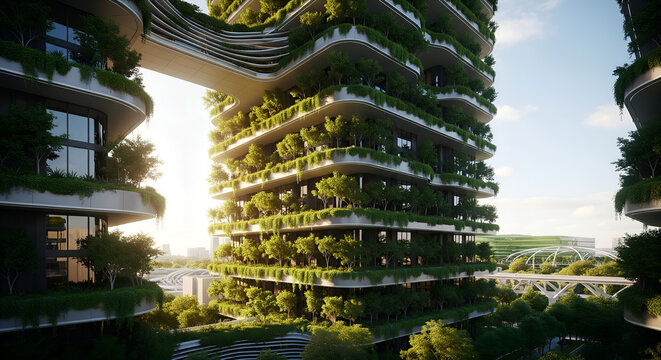 Glowing vertical glass planters transforming modern building facade with led-lit greenery