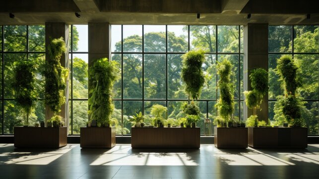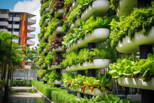 Vertical gardens on modern city buildings, isolated to highlight nature in urban environments