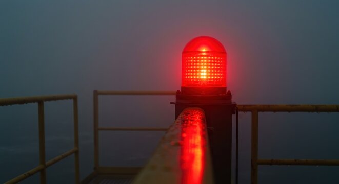 Red warning light intense glow dark background