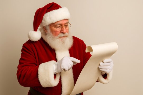 Santa claus reading the naughty and nice list during christmas