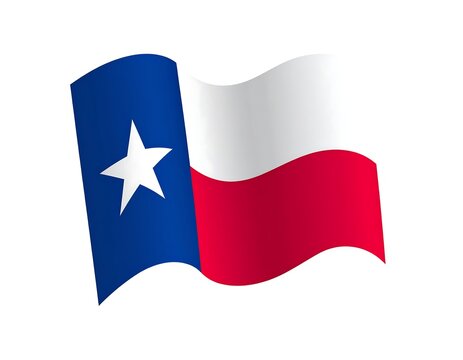 Illustration depicting a waving rectangular cloth with a blue vertical stripe containing a white star, adjacent to white and red stripes