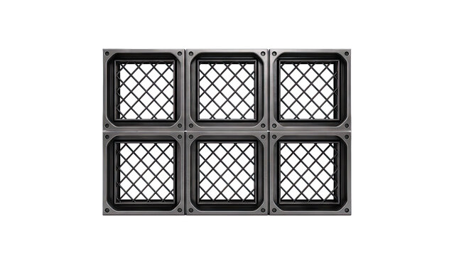 Six black baseball caps arranged in a grid on a white background