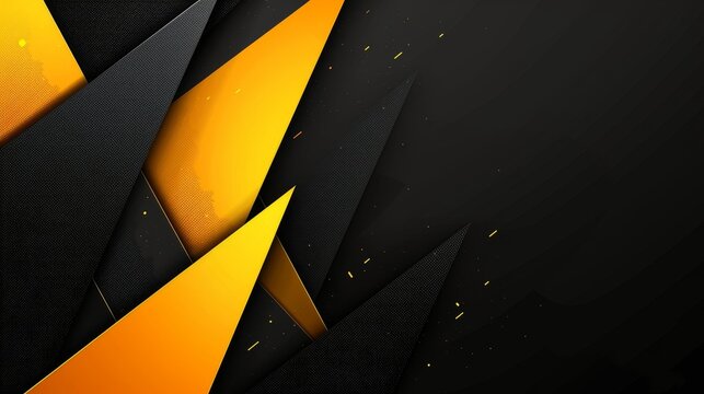 Abstract black wide horizontal background with orange and yellow gradient triangles geometric shapes. Modern simple polygon template design. Futuristic geometric shapes graphic, Generative AI