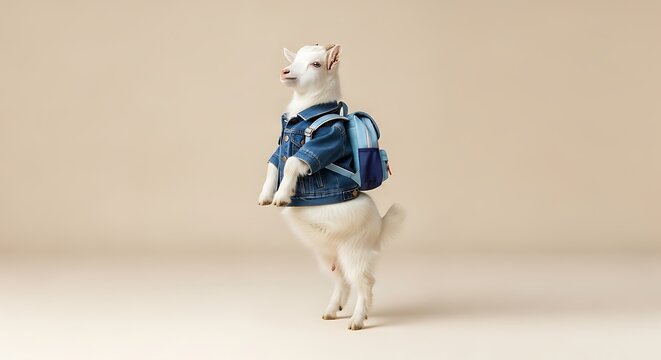 Adorable Goat in Denim Jacket and Backpack Back to School Fun