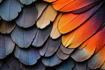 Colorful feathers creating a vibrant textured background, celebrating diversity and beauty of nature