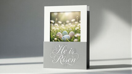 Easter card with flowers and eggs symbolizing resurrection and spring