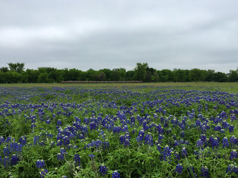 Vibrant Field Of Bluebonnets Under Cloudy Sky Images