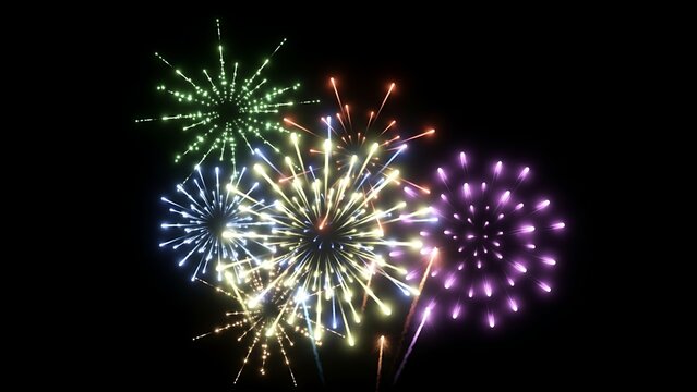 Vibrant bursts of colorful fireworks illuminate the dark night sky, creating a dazzling spectacle for a festive celebration